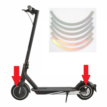 Naklejki odblaskowe znacznie poprawiają widoczność pojazdu w nocy, oraz dodają walorów wizualnych hulajnodze.