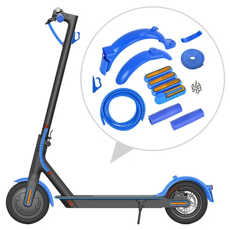 - Niebieski zestaw do personalizacji hulajnóg Xiaomi M365 / M365 PRO / PRO 2 / 1S / Essential / Mi3. Wykonany z najwyższej jakości materiałów | Zamów teraz i ciesz się wyjątkową jakością produktu!